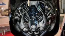 Аэрография – это искусство нанесения изображений на различные поверхности жидким или порошкообразным красителем при помощи сжатого воздуха. Инструментом художника является аэрограф. Объектом аэрографии может быть не только автомобиль, а любая гладкая поверхность (мотоцикл, компьютер, скейтборд, холодильник :) ).